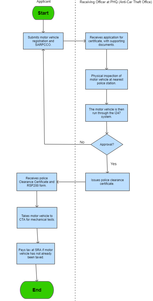 | Procedure Name | SARPCCO Clearance certificate for Importing Motor Vehicles from the SADC Region |